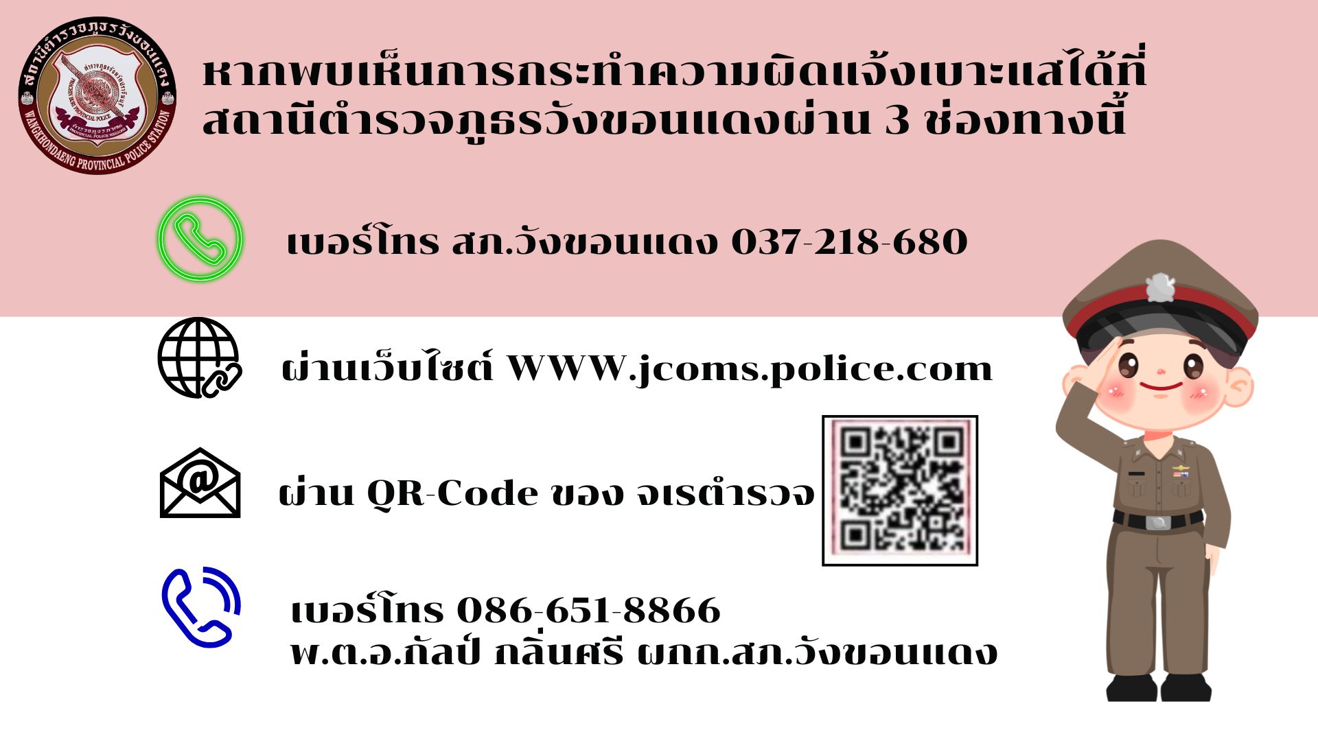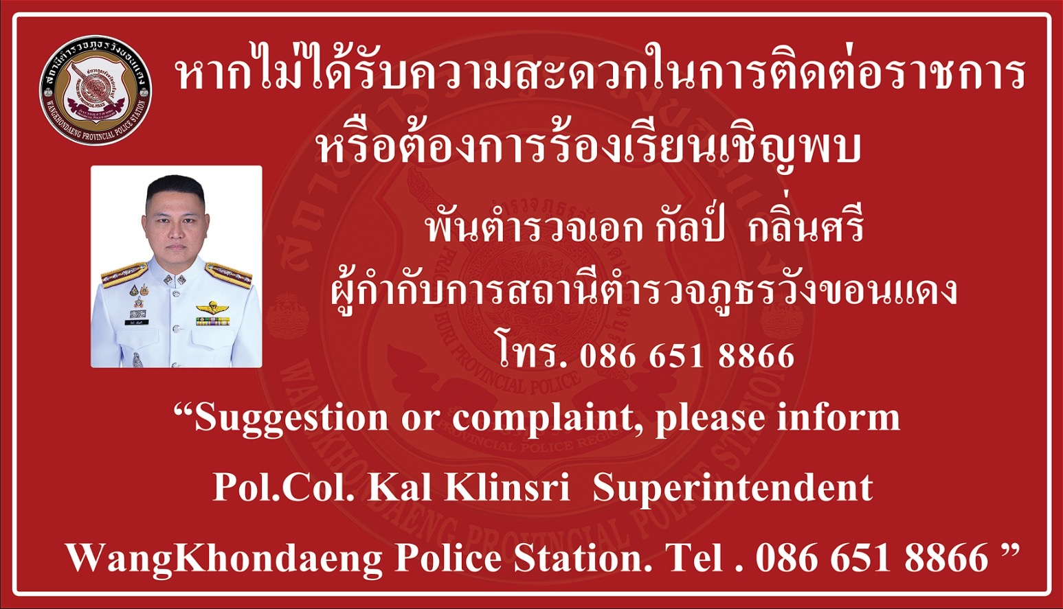 ร้องเรียนผ่านช่องทาง Facebook Fan page ของสถานีตำรวจภูธรวังขอนแดง