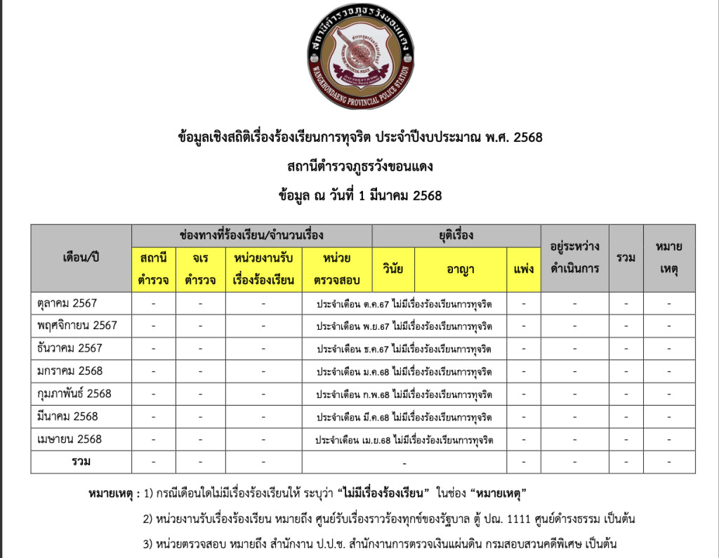 ข้อมูลเชิงสถิติเรื่องร้องเรียนการทุจริตประจำปี พ.ศ. 2569