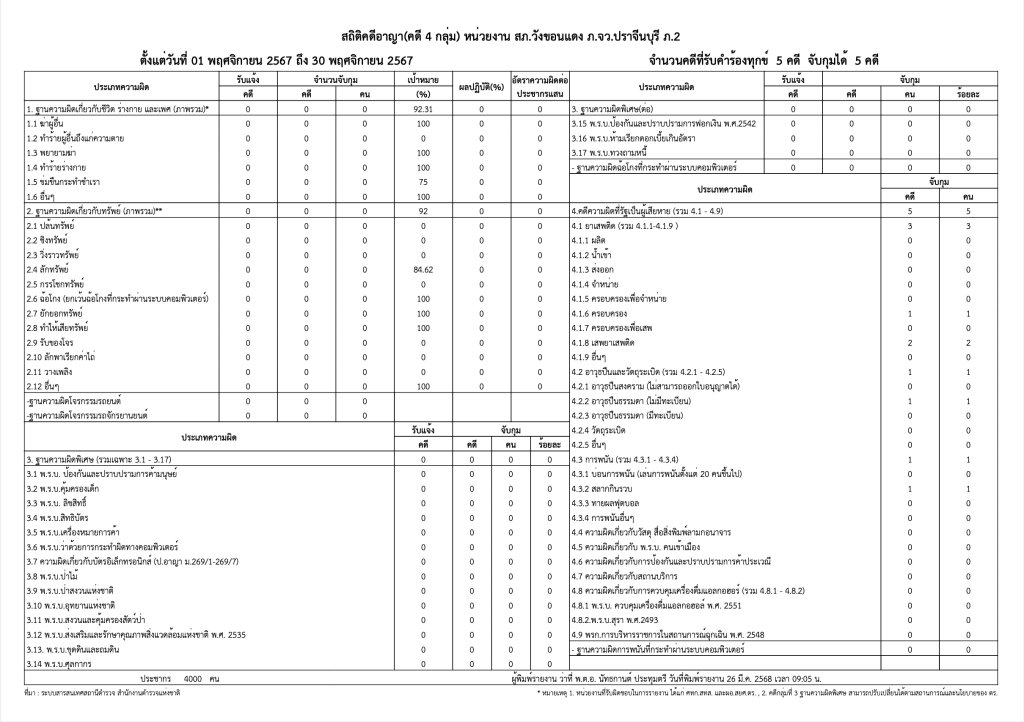 สถิติด้านคดีอาญา 4 กลุ่ม ตามระบบ CRIMES ประจำเดือน พฤศจิกายน 2567 ( 1-30 พ.ย.67 )