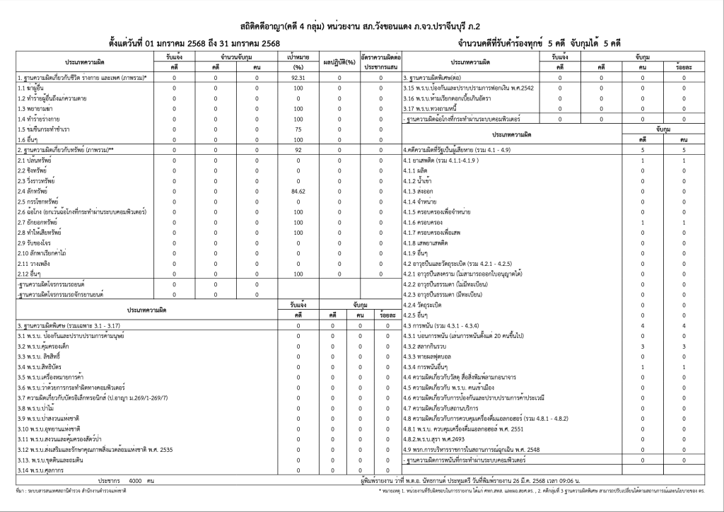 สถิติด้านคดีอาญา 4 กลุ่ม ตามระบบ CRIMES ประจำเดือน มกราคม 2568 ( 1-31 ม.ค.68 )