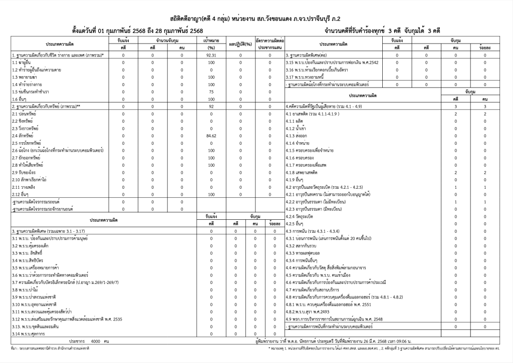 สถิติด้านคดีอาญา 4 กลุ่ม ตามระบบ CRIMES ประจำเดือน กุมภาพันธ์ 2568 ( 1-28 ก.พ.68 )