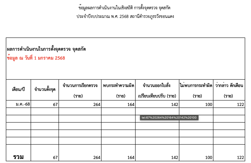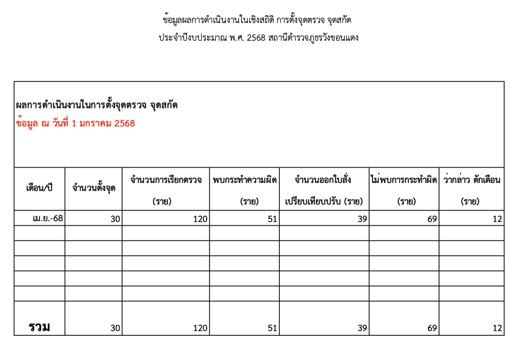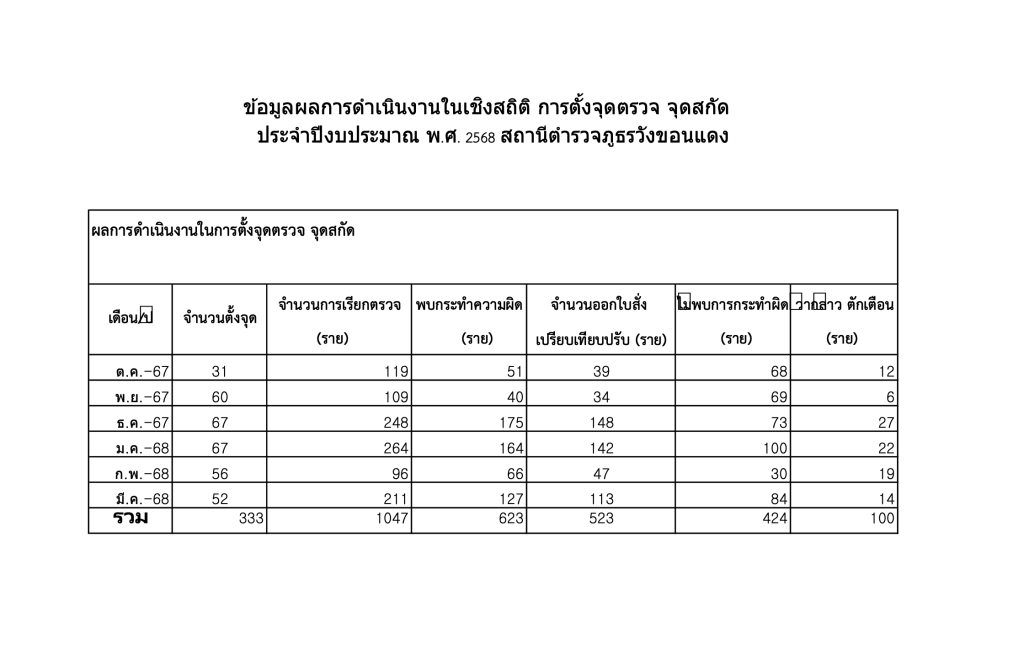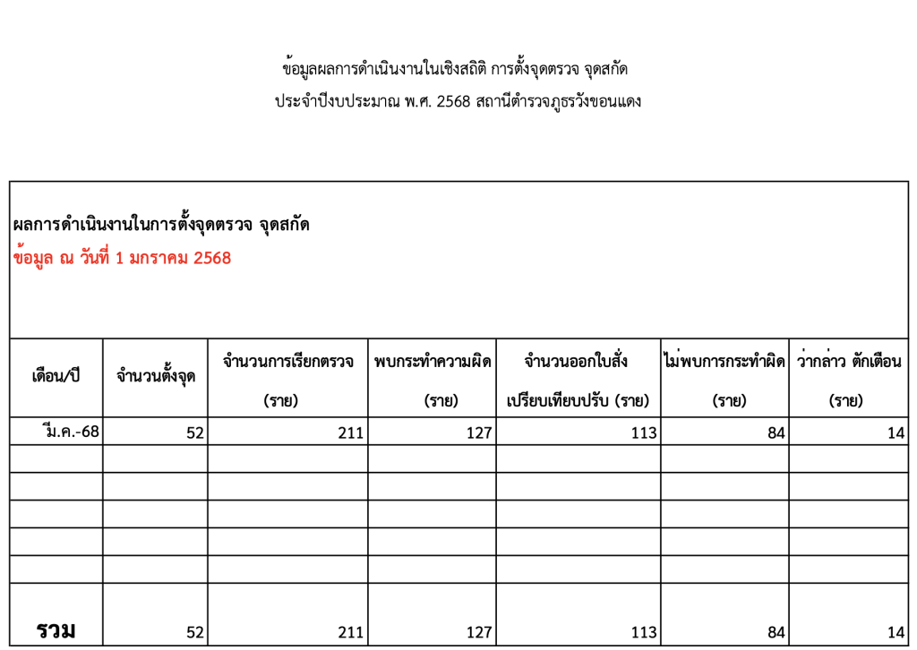 ผลการดําเนินงานในเชิงสถิติ การตั้งจุดตรวจ จุดสกัด