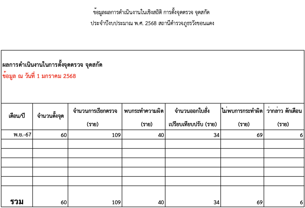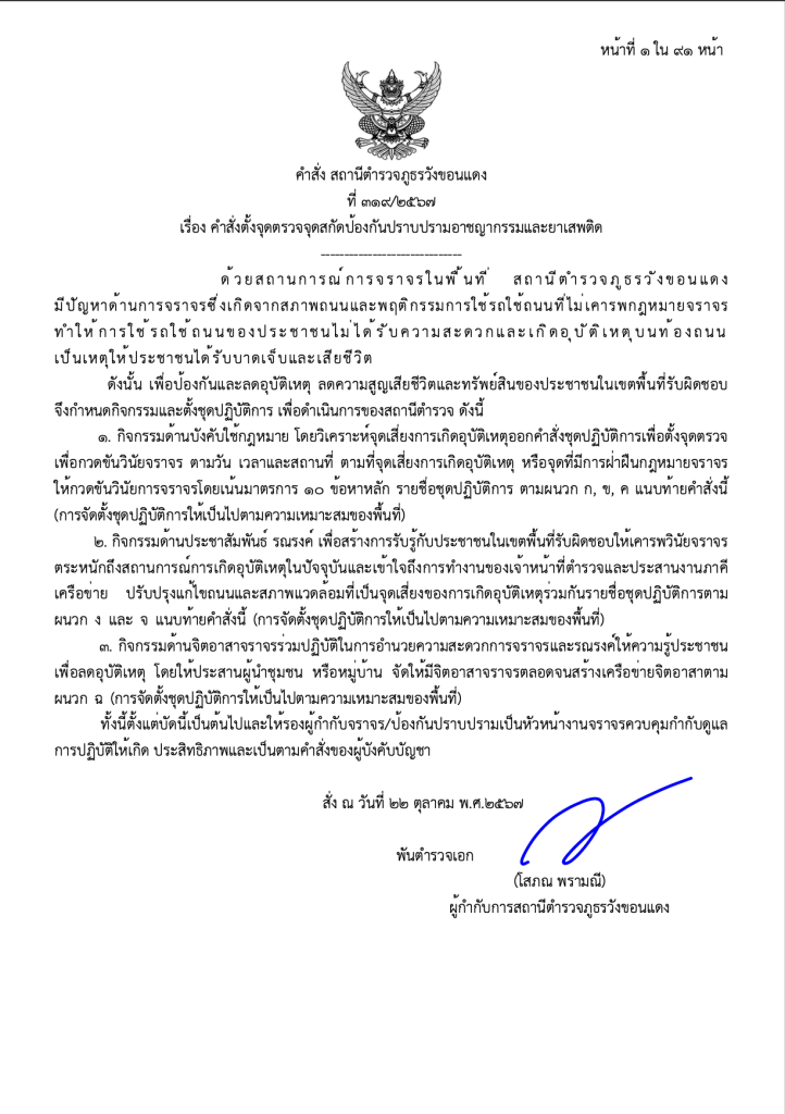คำสั่งตั้งจุดตรวจเดือน พฤศจิกายน ปี 2567