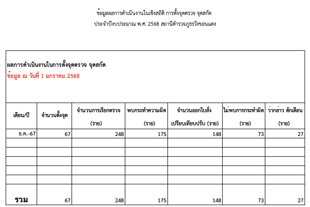 คำสั่งตั้งจุดตรวจเดือน ธันวาคม ปี 2567