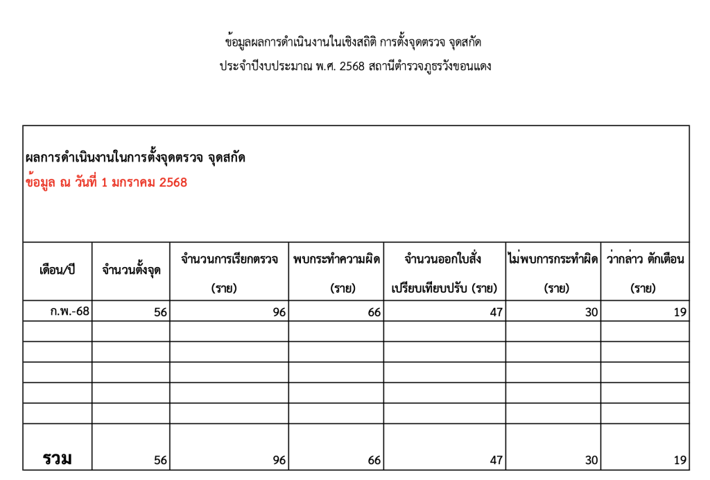 คำสั่งตั้งจุดตรวจเดือน กุมภาพันธ์ ปี 2568
