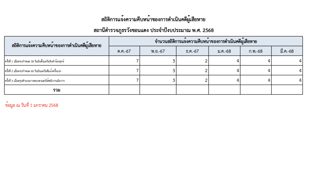 สถิติการแจ้งความคืบหน้าของการดำเนินคดีผู้เสียหาย