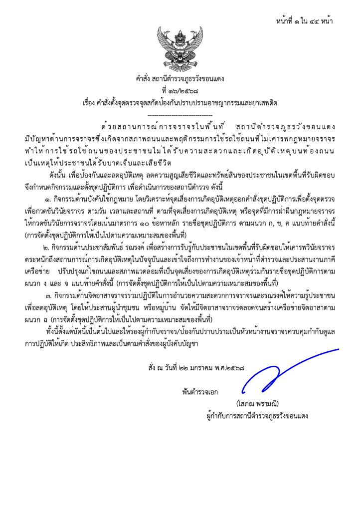 คำสั่งตั้งจุดตรวจเดือน มกราคม ปี 2568