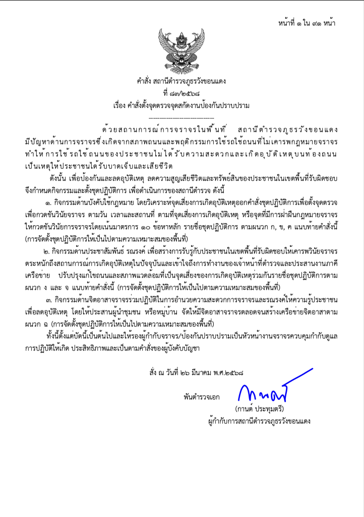คำสั่งตั้งจุดตรวจเดือน มีนาคม ปี 2568