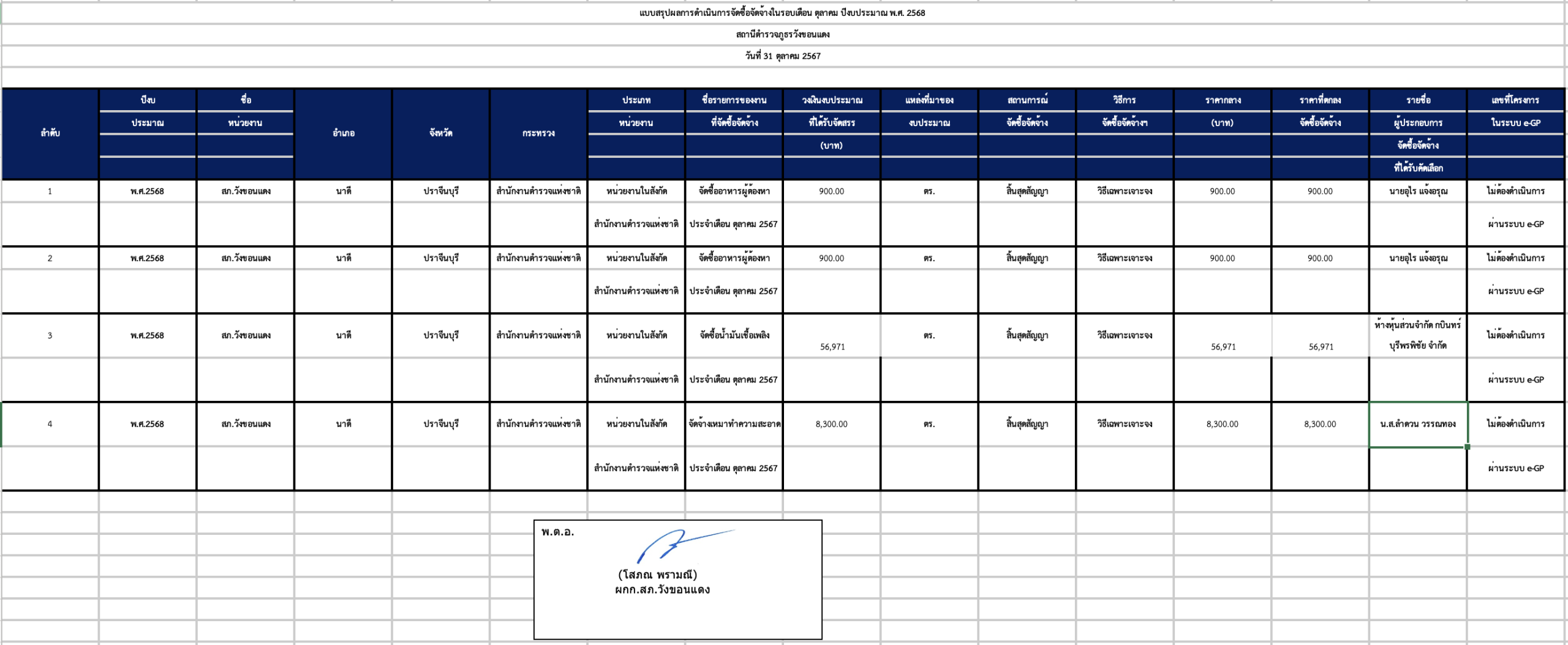 สรุปผลการจัดซื้อจัดจ้างเดือน ตุลาคม พ.ศ.2567