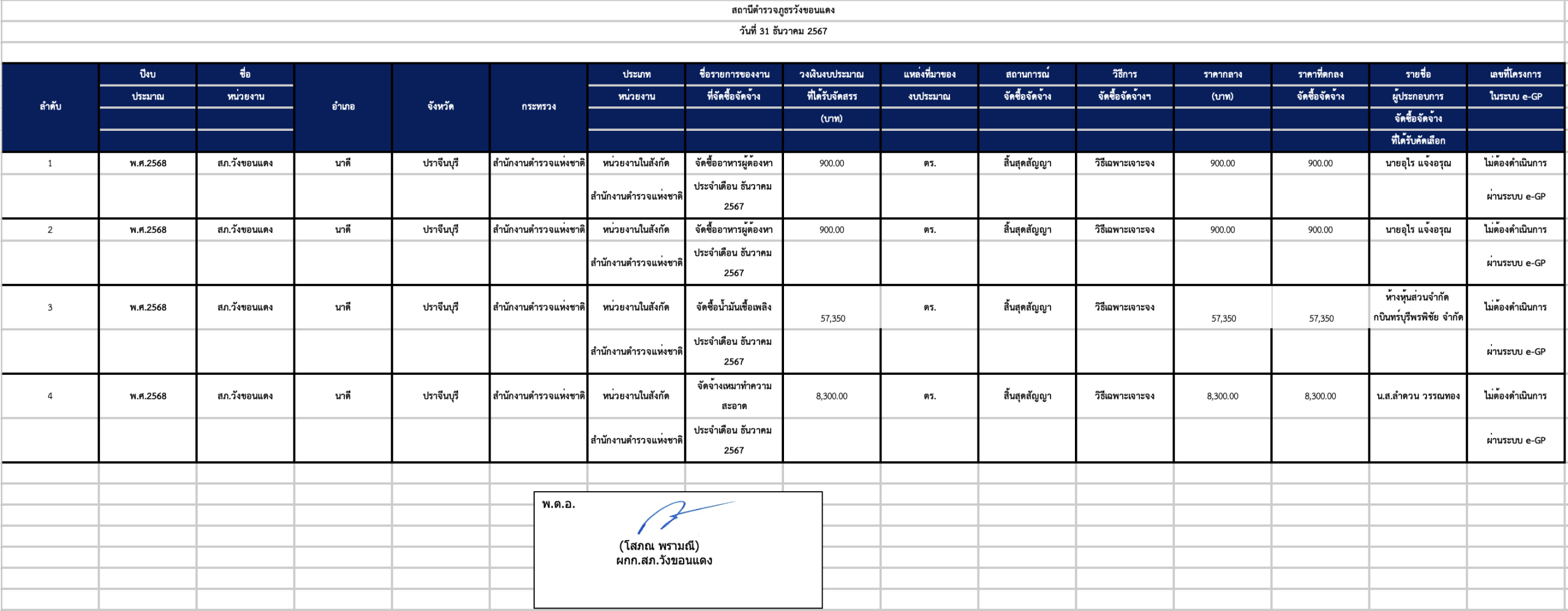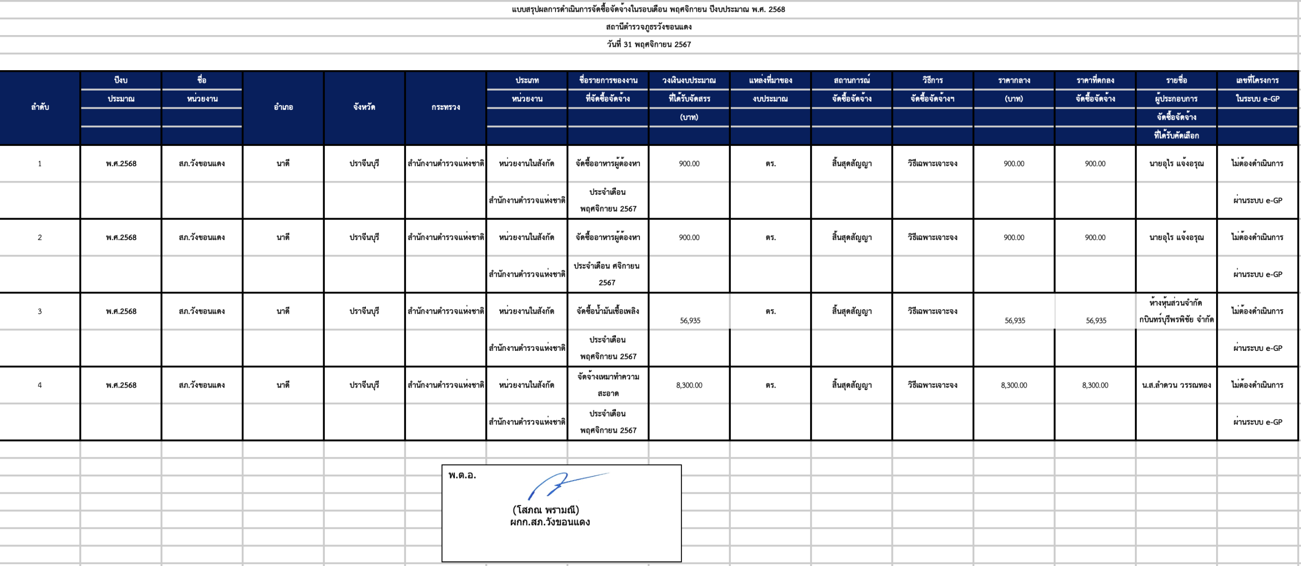 สรุปผลการจัดซื้อจัดจ้างเดือน พฤษจิกายน พ.ศ.2567