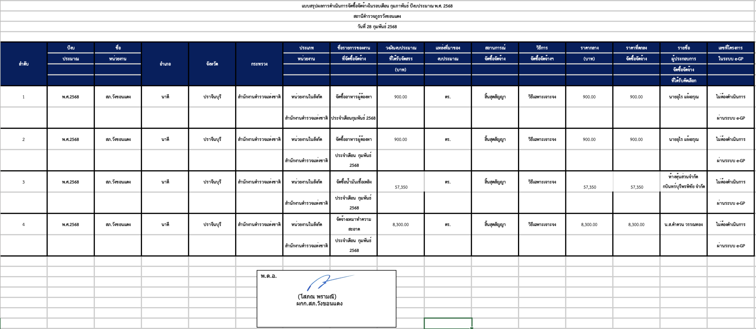 สรุปผลการจัดซื้อจัดจ้างเดือน กุมภาพันธ์ พ.ศ.2568