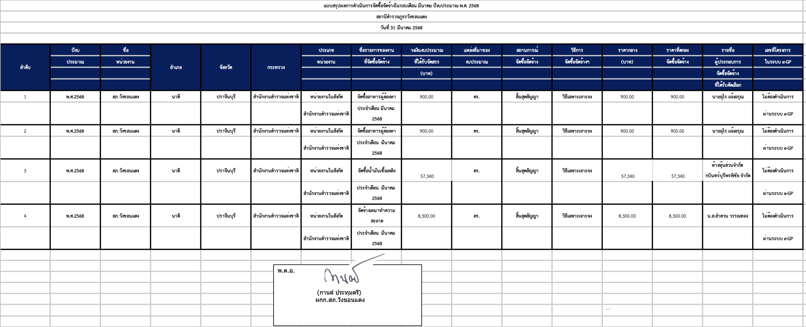 สรุปผลการจัดซื้อจัดจ้างเดือน มกราคม พ.ศ.2568