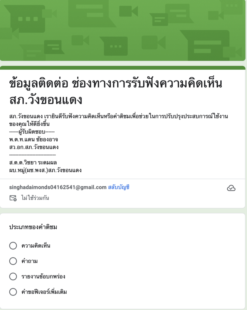 ช่องทางรับฟังความคิดเห็นผ่านทาง Google forms